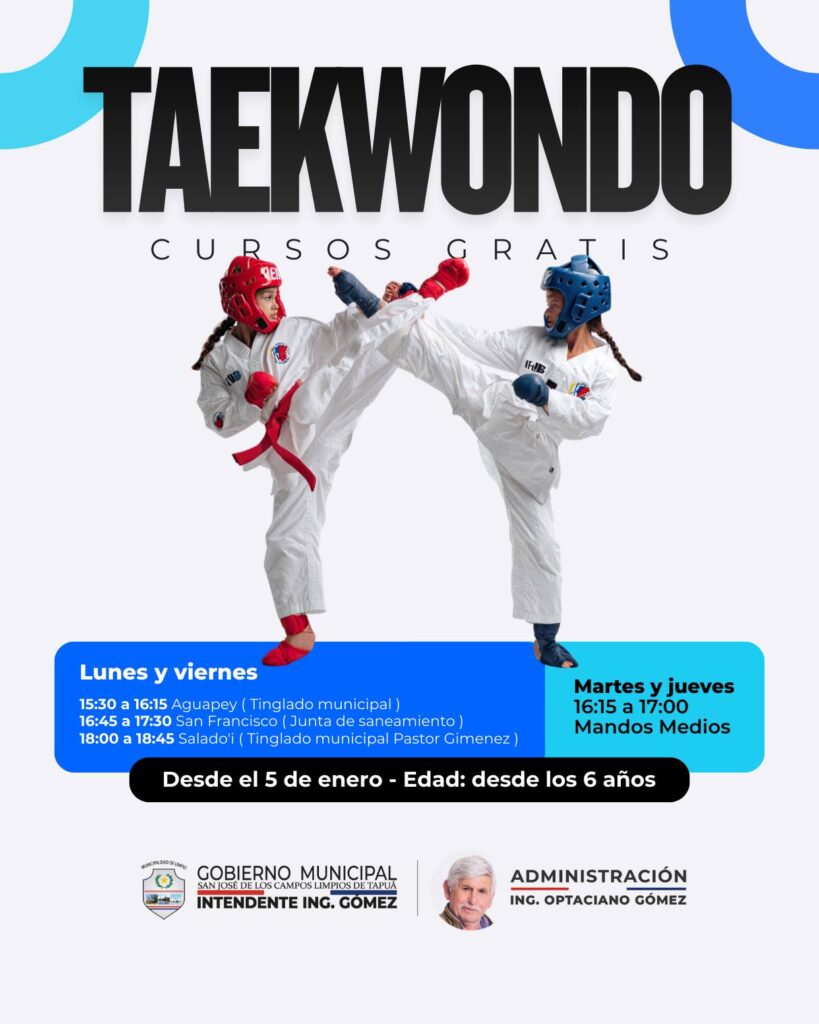 La Municipalidad de Limpio invita a niños y jóvenes a participar de las clases gratuitas de Taekwondo, una disciplina que fomenta el deporte, la disciplina, el respeto y la vida saludable ![]()